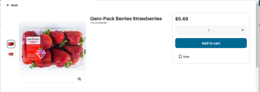 Now that you are shopping your store, you will be able to see all of the products that are in stock at the store you are shopping. Once you find the product you are looking for click on that product to show more details. If that is the product you want to pick up in store click Add to Cart