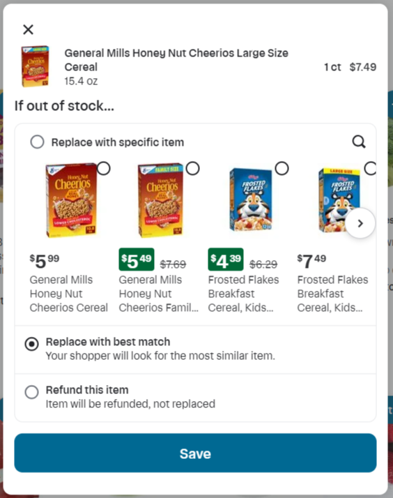 Replace with a Specific Item: This is where you can choose what product to have the team replace if it cannot be found.