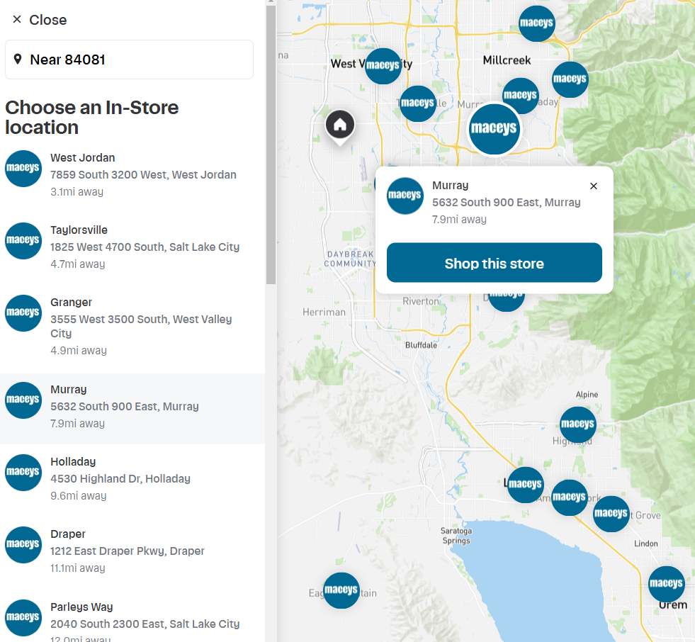 Once, you select In-Store there will be a edit icon. Click EDIT and you will have the opportunity to select which location you want to shop at. Click the location you want to Shop and then click Shop This Store