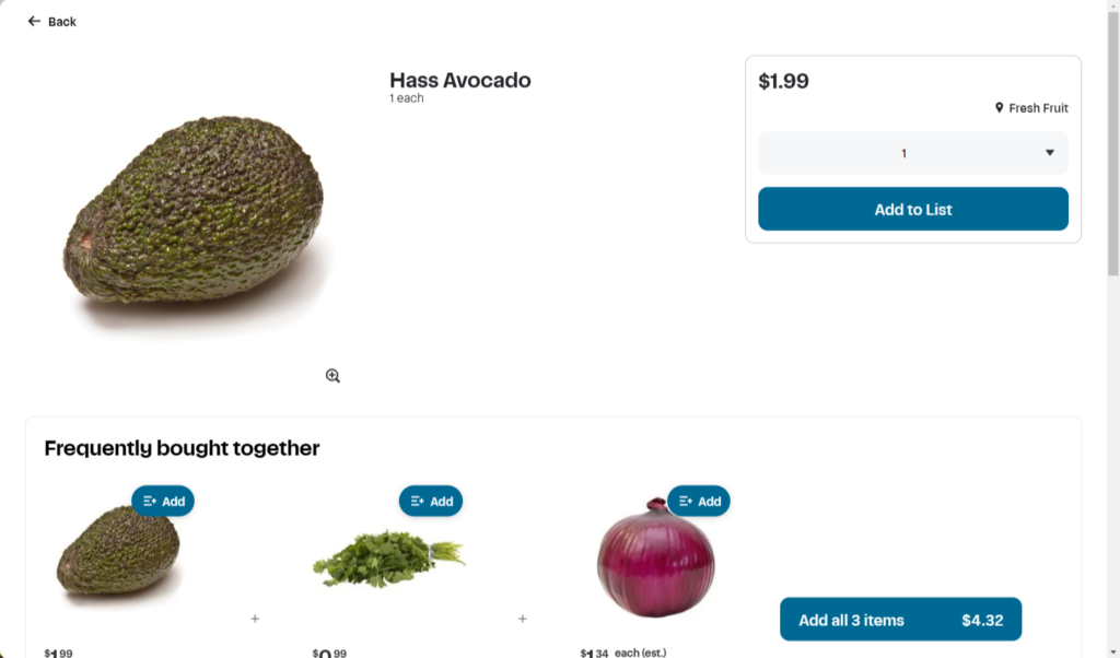 Now that you are shopping your store, you will be able to see all of the products that are in stock at the store you are shopping. Once you find the product you are looking for click on that product to show more details. If that is the product you want to shop in store click Add to List
