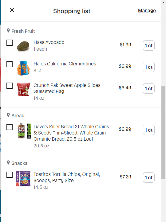 Once you have your grocery list complied you can view all of your items in the top right corner.